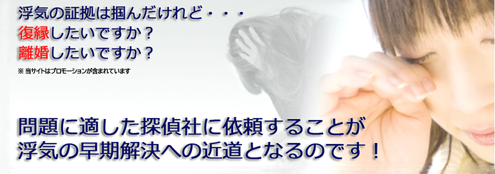 浮気解決は時間との勝負です。そして、証拠の内容や報告書の良し悪しによって裁判の行方や慰謝料の額に影響を与えるのです。一刻も早く貴方に合ったジャンルの探偵社へ相談をしてみてください。